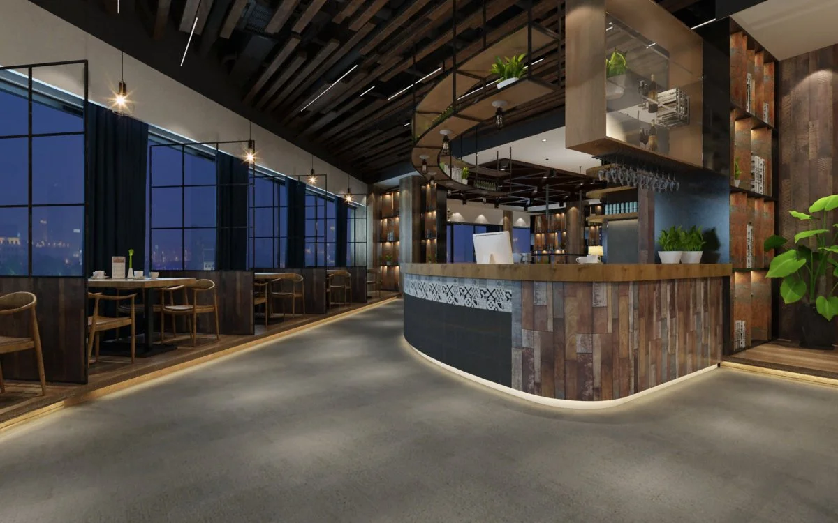 Architectural Fusion: We integrated traditional elements—such as custom-fabricated wood screening and brass accents—with modern industrial finishes like polished micro-cement and matte black steel.